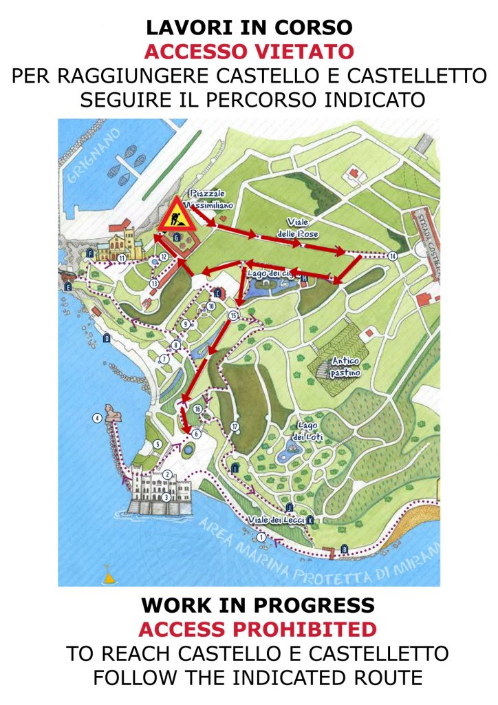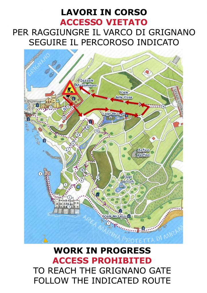 L’area interessata dal cantiere è la sezione centrale del viale che collega l’ingresso di Grignano con il Parterre del Castelletto, in prossimità delle Serre Nuove.