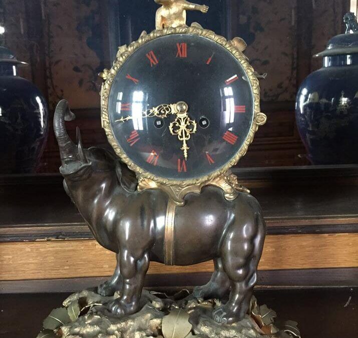 Siamo sicuri che molti dei nostri visitatori avranno notato, passeggiando tra le sale del Museo, la gran quantità di orologi esposti, che costituivano parte della ancor più ricca collezione dell’arciduca. Massimiliano infatti possedeva numerosi strumenti segnatempo, dai più semplici e sobri a quelli più elaborati e preziosi; questi, se da un lato garantivano una rigorosa organizzazione delle attività nel Castello, dall’altra consentivano a Massimiliano, noto collezionista, di dare sfogo alla sua passione per il bello e per l’esotico. Ne è un esempio l’orologio da mensola di manifattura francese che si conserva nel salottino giapponese, in cui lo strumento è allocato sul dorso di un elefante in bronzo con la testa e la proboscide rivolte verso l’alto, in direzione di una piccola scimmietta dorata che fissa l’orizzonte con sguardo assorto.